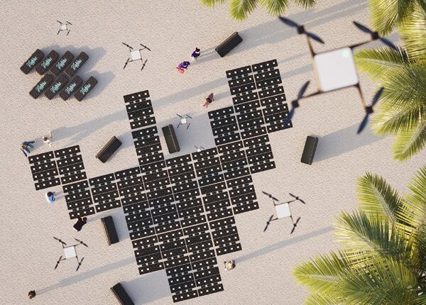 اس کا خاص ڈیزائن روشنی دینے والے ڈرون کے لیے بنایا گیا ہے۔ یہ ڈرون ایک ساتھ فضا میں اڑتے ہیں اور طرح طرح کی خوبصورت ڈیزائن بناتے ہیں۔ انہیں لائٹ شوز اور اشتہار کے لیے بھی استعمال کیا جاسکتا ہے۔ لیکن کھیل تماشوں سے ہٹ کر اب بہت سارے ڈرون نقشہ سازی، فصلوں کی دیکھ بھال اور دیگرامور میں بھی استعمال ہورہے ۔ ڈرون چادر اس ضمن میں بھی یکساں طور پر مفید ثابت ہوسکتی ہے۔