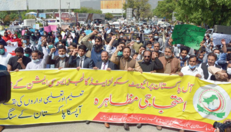 اسلام آباد: نجی تعلیمی اداروں نے نیشنل کمانڈ اینڈ کنٹرول سنٹر(این سی او سی) کی جانب سے تعلیمی اداروں کی مزید بندش کا فیصلہ یکسر مسترد کرتے ہوئے 8 اپریل سے ڈی چوک میں دھرنا دینے کا اعلان کردیا ہے۔
