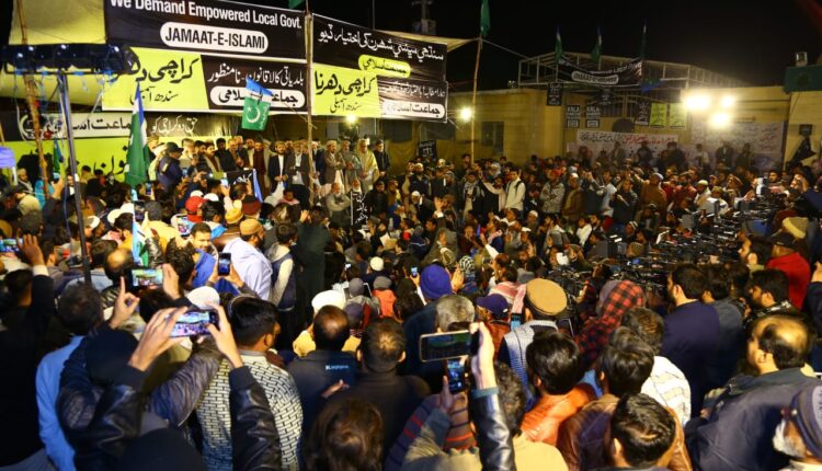 امیر جماعت اسلامی کراچی حافظ نعیم الرحمن نے دھرنے میں میڈیا کے نمائندوں، خواتین اور دیگر شرکاء سے الگ الگ خطاب کرتے ہوئے کہا کہہم نے کل حکومتی نمائندوں کو پھر بتایا ہے کہ کراچی کومیگا سٹی کا درجہ دیا جائے۔یہاں پر یونین کمیٹیوں کی تعداد کسی بھی طرح انصاف پر مبنی نہیں ہے۔