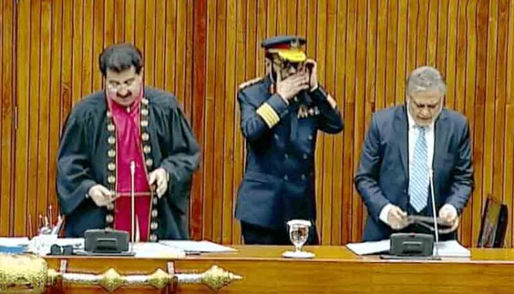 اسلام آباد: مسلم لیگ ن کے رہنما اور سابق وفاقی وزیر خزانہ اسحاق ڈار نے وطن واپس آنے کے بعد سینیٹ کا حلف اٹھا لیا۔ اجلاس میں اپوزیشن کی جانب سے شدید نعرے بازی اور احتجاج کیا گیا۔