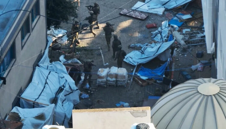قابض فوج کی بھاری نفری کے ساتھ اسپتال کے اندر داخل ہوگئی، صہیونی فوجیوں نے اسپتال کے اندر داخل ہوتے ہی داخلی راستوں کے دروازوں کو، موجود ادویات اور طبی آلات کے گوداموں کو دھماکے سے اڑا دیا، جس کے نتیجے میں کئی زخمی فلسطینی شہید ہوگئے، اسرائیلی درندوں نے اسپتال میں موجود متعدد بے گھر، بیمار اور زخمی افراد کو گرفتار کرکے زد کوب کیا گیا۔