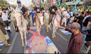 انہوں نے مزیدکہاکہ میں تمام لوگوں کو مبارکباد پیش کرتا ہوں جنہوں نے پوری دنیا میں فلسطین کے حق میں آواز بلند کی۔آج پاکستان کے لوگوں نے ثابت کردیا ہے کہ ہمارا جینا اور مرنا فلسطین کے لیے ہے۔ہم اللہ پر ایمان رکھتے ہیں کہ امت کی بیداری اور جذبہ طوفان کے آگے نہ اسرائیل اور نہ ان کا سرپرست امریکہ ٹھہر سکے گا۔امریکا اور اسرائیل کی شکست یقینی ہے۔فلسطین کی مائیں اپنے بچوں کو شہادت کا درس دیتی ہیں۔