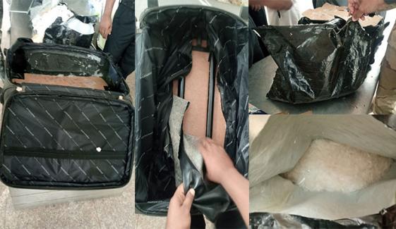اے ایس ایف کے عملے نے سامان کی تلاشی کے دوران 1 اعشاریہ 802 کلو گرام آئس ہیروئن برآمد کر لی۔