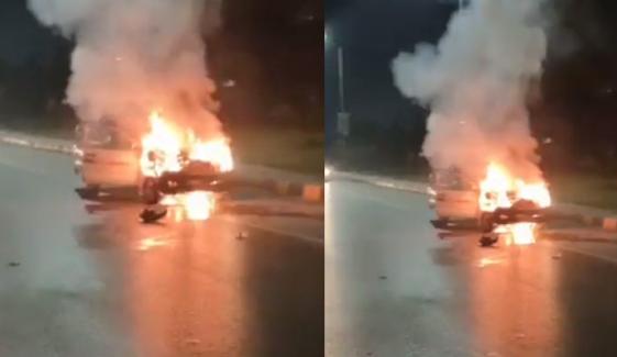 اسلام آباد پولیس کی گاڑی میں اچانک آگ لگ گئی، جس کے بعد اہلکاروں نے چھلانگ لگا کر جان بچائی۔