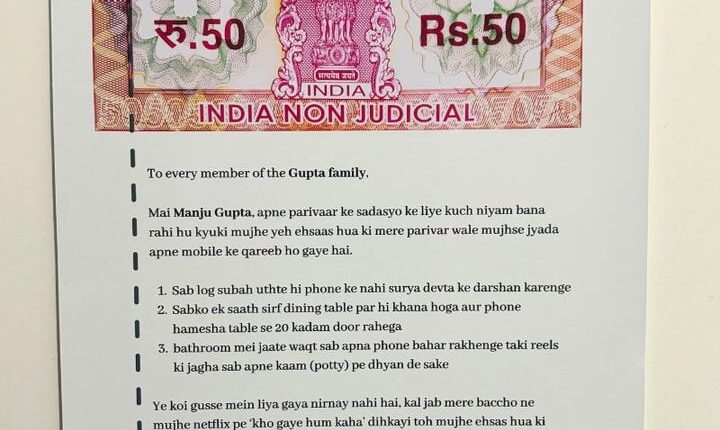 بھارتی میڈیا کے مطابق منجو گپتا نامی بھارتی خاتون نے اپنے شوہر اور بچوں کی اسمارٹ فون کی لت چھڑوانے کے لیے ایک معاہدہ تیار کیا جس پر ان سے دستخط کروائے۔ خاتون کا کہنا تھا کہ ان کے گھر والے ایک دوسرے سے زیادہ اپنے موبائل کے قریب ہوگئے تھے۔