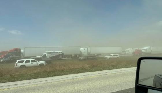 ریاستی پولیس کے مطابق گرد کے طوفان کے باعث مرکزی شاہراہ پر 60 کاریں اور تقریباً 30 کمرشل گاڑیاں ایک دوسرے سے ٹکرائیں۔
