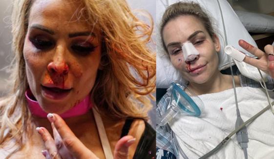 امریکی ریسلر نٹالیا کیتھرین کی فائٹ کے دوران خاتون ریسلر نے ناک کی ہڈی توڑ دی۔