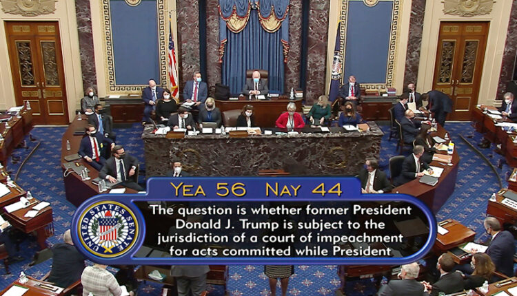 امریکی سینیٹ میں سابق صدر ڈونلڈ ٹرمپ کے مواخذے کی کارروائی، سینٹ نے کہہ دیا کہ ٹرائل آئینی ہے اور اسے آگے بڑھایا جائے۔ سینیٹ نے ٹرائل کے غیر آئینی ہونے سے متعلق ٹرمپ کے وکلا کے دلائل مسترد کر دیئے۔