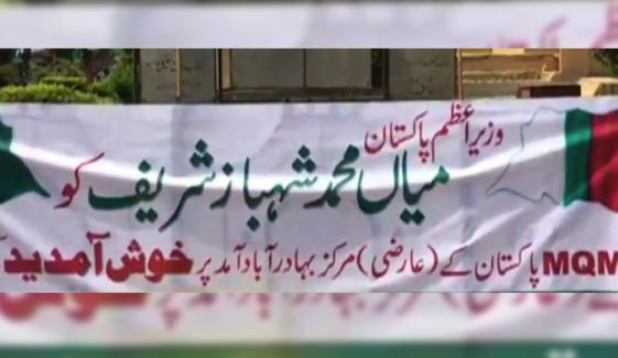 متحدہ قومی موومنٹ پاکستان (ایم کیو ایم) کے مرکزپر نومنتخب وزیر اعظم شہباز شریف کی آمد پر ’وزیراعظم خوش آمدید‘ کے بینرز آویزاں کر دیئے گئے ہیں۔