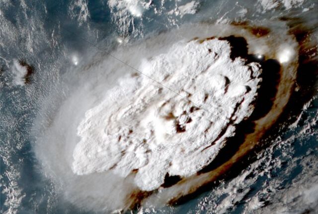 جزیرہ ریاست ٹونگا کے قریب زیرِ سمندر ایک بڑا آتش فشاں پھٹنے سے ایک میٹر سے زیادہ اونچی لہریں اس کے ساحلوں سے ٹکرائی ہیں۔