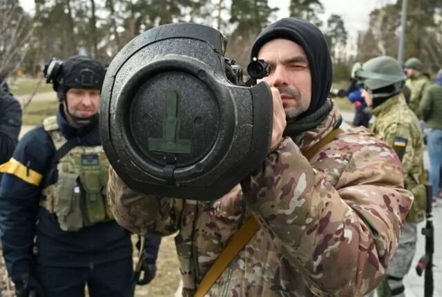 یوکرین کا ایک فوجی کندھے پر نصب سٹار سٹریک میزائل فائر کر رہا ہے۔