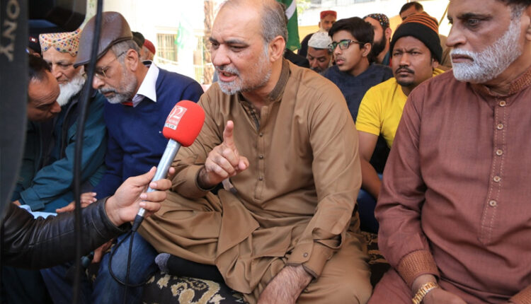دھرنے کے موقع پر میڈیا سے گفتگو کرتے ہوئے جماعت اسلامی کراچی کے امیر حافظ نعیم الرحمن کا کہنا تھا کہ سندھ اسمبلی سے منظور ہونے والا بلدیاتی بل کسی صورت قبول نہیں, پیپلز پارٹی آمریت قائم کرنا چاہتی ہے،جب تک اس بل کو منسوخ نہیں کیا جاتا ہمارا احتجاج جاری رہے گا.انہوں نے کہا کہ ہم شہریوں کو ان کے حقوق دلا کر رہیں گے،ان کا کہنا تھا کہ یہ کیا مذاق ہے کہ نسلہ ٹاور بم سے اڑادو، یہ کیا مذاق ہے کہ مدینہ مسجد گرادو، سپریم کورٹ کی پارکنگ ناجائز بنی ہوئی ہے وہ کیوں نہیں گراتے .انہوں نے چیف جسٹس کو مخاطب کرتے ہوئے سوال کیا کہ وہ حیات ریجنسی جو شاہراہ دستور پہ جاتا ہے وہ نظام انصاف پہ کلنک کا ٹیکہ ہے ،انہوں نے کہا کہ آپ کی بنچ کا ایک جسٹس حیات ریجنسی کو ریگولرائز کرنے کا فیصلہ کرتا ہے اور ادھر نسلہ ٹاور گرانے کا فیصلہ دیتے ہیں.آپ نظام عدالت کو گرارہے ہیں ،آپ مدینہ مسجد کو گرانے کا حکم نہیں دے رہے بلکہ ہمارے اقدار کو گرانے کا حکم دے رہے . مسجد نہیں گرے گی.آپ ہمیں مت سکھائیں کہ مسجد کیسے بنانا چاہیے ، قبضے کی جگہ کسی کی جاگیر ہوتی تو اور بات تھی .یہ کسی کا گھر نہیں بلکہ مسجد ہے ، جو ایمنسٹی پلاٹ پر واقع ہے اور اہل محلہ نے ہی بنوائی اور محکمے سے ریگولرائز کروایا اور چالیس سال سے یہ مسجد موجود ہے .آپ نے تو فیلکن مال کو اس لیے چھوڑ دیا کہ اس پر ایئروار کالج لکھ دیاگیا ہے .یہ دو نمبری نہیں چلے گی .دو نمبری چیف جسٹس کرے وہ بھی دو نمبری ہے ، آرمی چیف یا وزیر اعظم و صدر مملکت کرے وہ بھی دو نمبری ہے، میں اور آپ کریں تو وہ بھی دو نمبری ہے .دونمبری ،دو قانون، دو نظام نہیں چلیں گے۔انہوں نے کہا کہ عدالت نے عمران خان کی بنی گالا کو ریگولرائز کردی اور یہاں مڈل کلاس کو بے گھر کردیا.اب مسجدوں کو گرانے جارہے ہیں .انہوں نے کہا کہ 35ہزار عمارتیں ہیں جو اس شہر میں پارکوں پہ بنی ہیں، ہم ہی وہ ہیں جس نے یہ ایشو اٹھایا.انہوں نے کہا کہ تب ظلم کا ماحول تھا اور ہم نے اس ماحول کا بھی سامنا کیا تھا جبکہ 12 مئی کو ججز تھے جو عدالتوں سے دیوار پھلانگ کر باہر بھاگے تھے .انہوں نے کارکنوں کو مخاطب کرتے ہوئے کہا کہ کراچی کے حقوق حاصل کرنے کے لیے جدوجہد محنت اور مستقل مزاجی کی ضرورت ہے، آئیے اس مستقل مزاجی کا آغاز سال نو کے آغاز کے ساتھ کرتے ہوئے اس دھرنے کو طویل کرتے ہیں.ہم نے ذمے داران کے ساتھ مشورہ کیا ہے اور طے کیا ہے کہ یہ دھرنا جاری رہے گا اور یہ چاند کے ہالے کی طرح ہالہ بڑھتا رہے گا اور شہریوں کو اپنا ہم خیال بناتا چلا جائے گا.انہوں نے کہا کہ اب ہم یہیں سے آئندہ کا لائحہ عمل طے کریں گے.