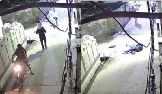 فائرنگ کے واقعے کی سی سی ٹی وی ویڈیو بھی سامنے آگئی ہے جس کے مطابق فائرنگ کرنے والا ملزم موٹرسائیکل پر سوار اپنے ساتھیوں کے ساتھ فرار ہوا۔