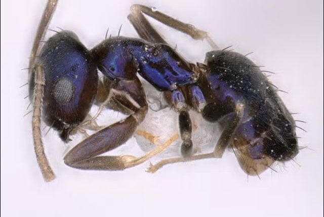 تتلی اور دھس جیسے کیڑے عموماً نیلے رنگ میں دیکھے جاسکتے ہیں لیکن چیونٹیوں میں یہ رنگ انتہائی نایاب ہوتا ہے۔