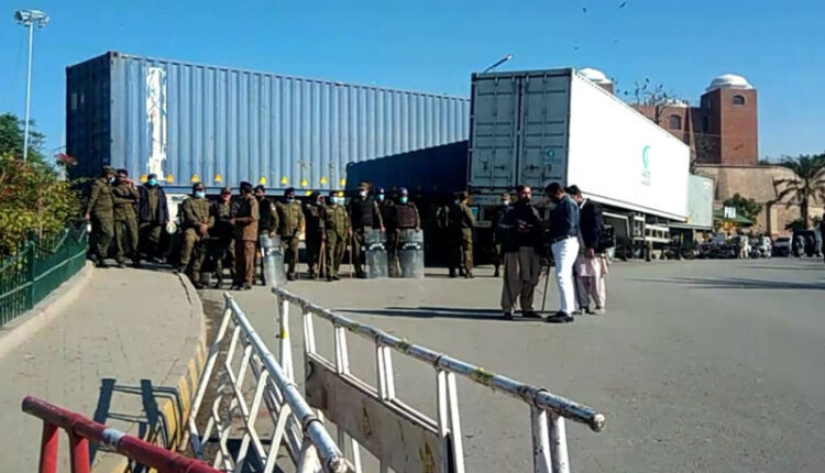 اسلام آباد: تحریک انصاف کی جانب سے ممکنہ دھرنے کے پیش نظر اسلام آباد کو ایک ہفتے تک سیل کرنے کی تیاریاں کی جا رہی ہیں، جب کہ اس سلسلے میں سیکڑوں کی تعداد میں کنٹینرز وفاقی دارالحکومت کے مختلف راستوں پر رکھ دیے گئے ہیں۔