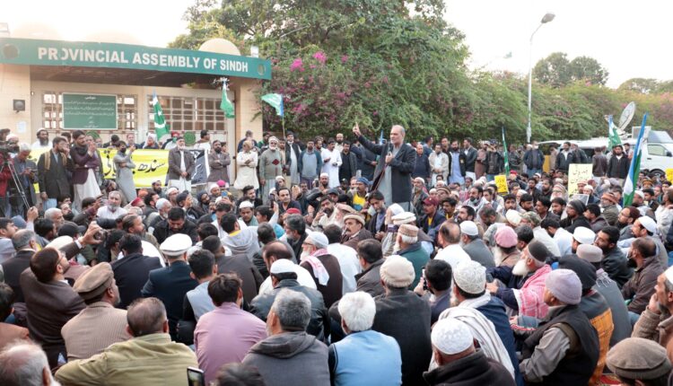 جماعت اسلامی کاسندھ حکومت کے کالے قانون کے خلاف دھرنا جاری