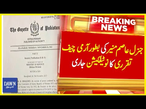جنرل آصف منیر کی بات آرمی چیف تقرر نوٹیفکیشن جاری | بریکنگ نیوز | ڈان نیوز