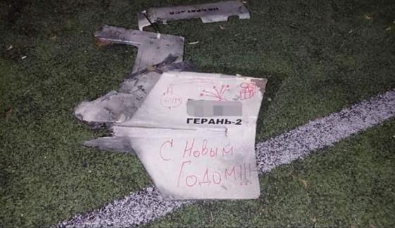 غیرملکی میڈیا کے مطابق یوکرین کے دارالحکومت کیف کے پولیس چیف نے سوشل میڈیا پر ڈرونز کے تباہ شدہ ملبے کی تصاویر شیئر کیں جن پر روسی زبان میں ’ہیپی نیو ایئر‘ اور ’بُوم‘ لکھا تھا۔