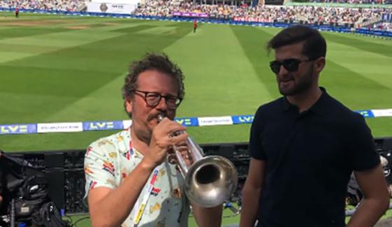 انگلینڈ اور آسٹریلیا کے درمیان ایشز سیریز کے پہلے ٹیسٹ میچ کے دوران شاہین آفریدی کی موجودگی میں بارمی آرمی نے ملی نغمے کی دھن بجائی۔