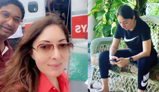 شرمیلا فاروقی نے اپنے انسٹاگرام اکاؤنٹ کی اسٹوری اور پوسٹ پر ورزشی لباس پہنے ہوئے نئی تصویر شیئر کی ہے جس سے متعلق اُن کا بتانا ہے کہ یہ تصویر آج اُن کے شوہر نے بنا کر اُنہیں واٹس اپ پر بھیجی ہے۔