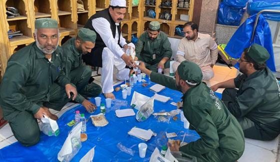 بعد ازاں ایک اور ٹوئٹ شیئر کیا گیا جس میں انہیں مدینہ منورہ کے خدام کے ساتھ افطاری کرتے دیکھا جاسکتا ہے۔