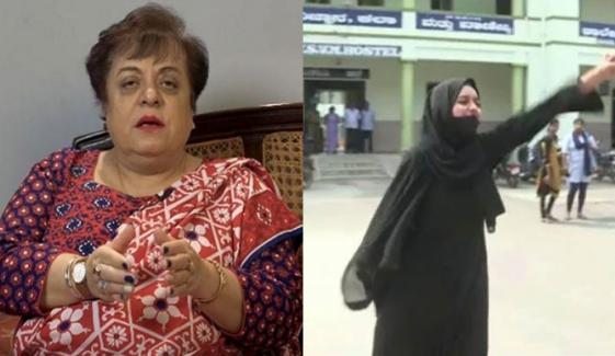 شیریں مزاری نے مائیکرو بلاگنگ ویب سائٹ ٹوئٹر پربھارتی ریاست کرناٹک میں انتہاپسند ہندوؤں کے سامنے ڈٹ جانے والی کالج کی باحجاب مسلمان طلبہ کی تعریف میں بیان جاری کیا ہے۔