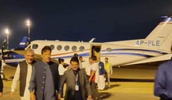 سابق وزیرِ اعظم عمران خان ہفتے کی شب ساڑھے 8 بجے پاکستانی بزنس گروپ ’اینگرو‘ کی ملکیت AP-PLE رجسٹریشن کے حامل طیارے میں اسلام آباد سے کراچی پہنچے تھے۔