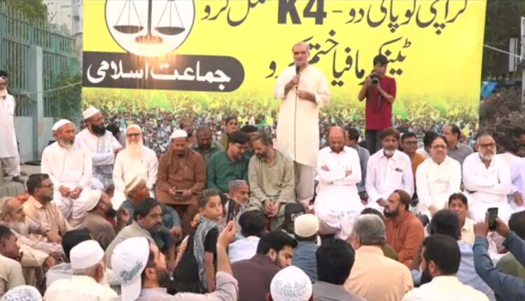دھرنے سے خطاب کرتے ہوئے حافظ نعیم الرحمن نے کہا کہ کراچی میں اس وقت بلدیہ ٹاؤن سے لانڈھی، ڈی ایچ سے سرجانی ٹاؤن تک پانی کا بحران ہی بحران ہے، پیپلزپارٹی نے کہا تھا کہ پانی کے بحران ختم کررہے ہیں اور کے فور منصوبہ جلد مکمل کررہے ہیں لیکن گزرتے دن کے ساتھ پانی کا بحران بڑھتا جارہا ہے اور نئے منصوبوں پر بھی عمل نہیں ہورہا۔