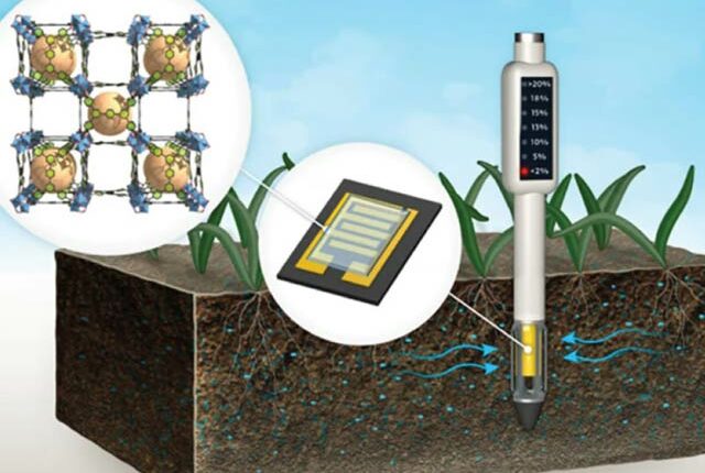 تجرباتی سینسر شاہ عبداللہ جامعہ برائے سائنس و ٹیکنالوجی (کے اے یو ایس ٹی) کے محمد اضودی اور خالد سلما نے تیار کیا ہے جو مٹی کی نمی نوٹ کرکےبتاتا ہے کہ آیا اس میں زائد پانی موجود ہے یا پھر مزید پانی کی ضرورت ہے۔ اسے میٹل آرگینک فریم ورک (ایم اوایف) کی مدد سے بنایا گیا ہے جو قدرےنیا مٹیریئل بھی ہے۔