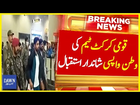 قومی کرکٹ ٹیم کی وطن واپسی شاندر استقبل | بریکنگ نیوز | ڈان نیوز