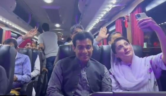 پاکستان مسلم لیگ ن کی نائب صدر مریم نواز نے بس میں اجلاس کے لئے جاتے ہوئے اپنے والد اور سابق وزیراعظم نواز شریف سے ویڈیو کال پر بات کی۔