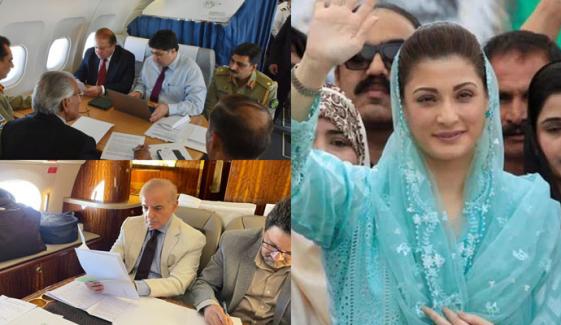 مسلم لیگ ن کی نائب صدر مریم نواز نے وزیراعظم شہباز شریف اور والد نواز شریف کی دوران پرواز کام کرنے کی تصویر شیئر کردی۔