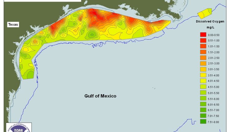 نیشنل اوشین سروس (این او اے اے) کے تعاون سے سائنسدانوں نے ایک رپورٹ شائع کی جس کے مطابق خلیج میکسیکو کا “ڈیڈ زون” (کمیاب آکسیجن والے خطہ) اس سال ریکارڈ پر دنیا کا 12 واں سب سے بڑا ڈیڈ زون علاقہ بن گیا ہے۔