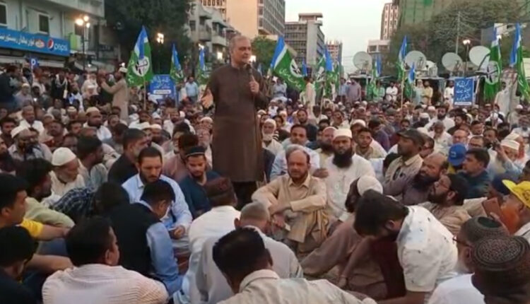احتجاجی دھرنے میں جماعت اسلامی کراچی کے نائب امیر ڈاکٹر اسامہ رضی سمیت ضلع کے دیگر ذمہ داران شریک تھے، دھرنے کی قیادت امیر جماعت اسلامی کراچی حافظ نعیم الرحمن کررہےتھے۔