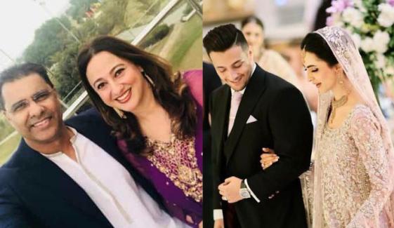 وقار یونس نے اپنے ٹوئٹ میں ہیش ٹیگ ’حسن‘ ’عائلہ‘ ’کراچی کی شادی‘ بھی لکھا ۔