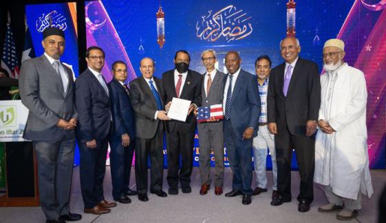 رکن کانگریس ایل گرین نے اس موقع پر ایک دہائی سے افطار ڈنر کے منظم پر واشنگٹن ڈی سی پر لہرانے والا امریکی پرچم اور کانگریسی تعریفی اسناد بھی منتظمین کو پیش کیں جو کہ ہر سال گراں قدر مالی تعاون کرنے والے آئل ٹائیکون جاوید انور، اعزازی چیئر نصرو روپانی، آئمن کبیر اور افطار کے کو آرڈینیٹر سعید شیخ نے وصول کی ۔