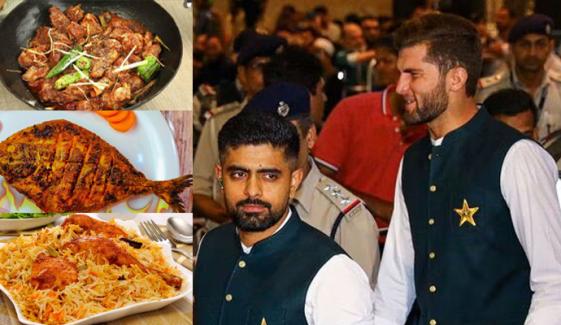 پاکستان ٹیم کے کھانے کے مینیو میں چانپیں، مٹن کڑاہی، بٹر چکن، گرلڈ فش، حیدر آباد کی مشہور بریانی شامل ہے۔