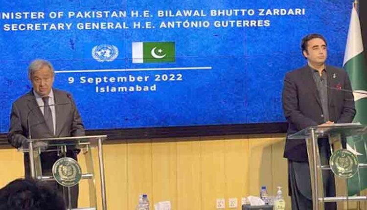 انہوں نے مزید کہا کہ 3 کروڑ 30 لاکھ لوگوں کو فوری طور پر بنیادی ضروریات فراہم نہیں کر سکتے، اس کے لیے ہمیں عالمی برادری کے تعاون کی شدید ضرورت ہے۔ بلاول بھٹو زرداری نے اقوام متحدہ کی جانب سے سیلاب متاثرین کے لیے مدد فراہم کرنے پر سیکرٹری جنرل کا شکریہ ادا کہا۔ انہوں نے کہا کہ نسل نو موسمیاتی تبدیلیوں کا بڑے پیمانے پر شکار ہو رہی ہے۔ ہمیں اس موسمیاتی تغیر کے نتیجے میں ہونے والی انسانی تنزلی کی بدترین صورت حال سے نمٹنا ہوگا۔ انہوں نے عزم کا اظہار کیا کہ ہم پاکستان کو تعمیر کریں گے۔