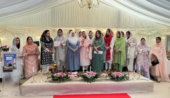 پاکستان ہاؤس لندن میں ماہ ربیع الاوّل کی مناسبت سے منعقدہ اس محفل میلاد کے اجتماع میں برطانوی نژاد پاکستانی خواتین کی بڑی تعداد نے شرکت کی۔