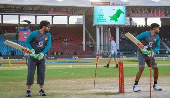 پاکستان اور انگلینڈ کے درمیان سیریز کا 5 واں ٹی ٹوئنٹی میچ کل کھیلا جائے گا، دونوں ٹیمیں آج قذافی اسٹیڈیم میں پریکٹس کریں گی۔