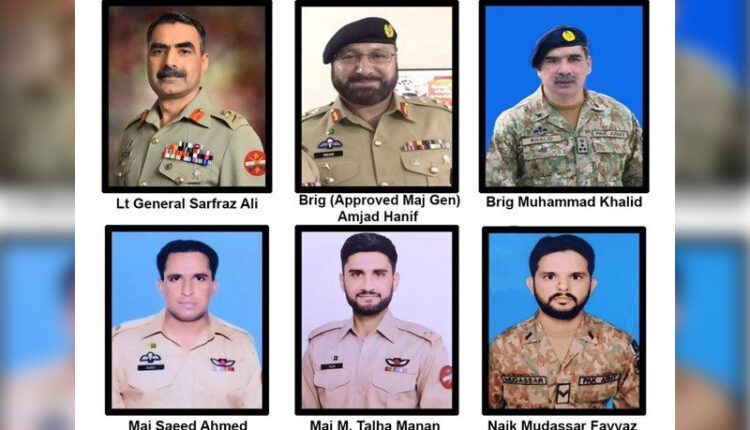 راولپنڈی: بلوچستان میں پاک فوج کے لاپتہ ہیلی کاپٹر کا ملبہ مل گیا جس میں سوار کور کمانڈر سمیت تمام 6 افسران کی شہادت کی تصدیق ہوگئی۔