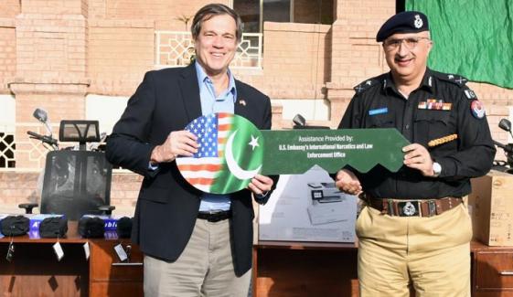 پاکستان میں تعینات امریکا کے ڈپٹی چیف آف مشن نے پشاور کا دورہ کرتے ہوئے سیکیورٹی سامان آئی جی پولیس کے حوالے کیا۔