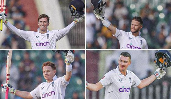 انگلینڈ کی جانب سے زیک کراؤلے، بین ڈکیٹ، اولی پوپ اور ہیری بروک نے 100 کا ہندسہ عبور کیا۔
