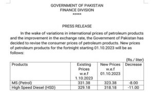 اسلام آباد: حکومت نے پیٹرولیم مصنوعات کی قیمت میں کمی کا اعلان کردیا۔