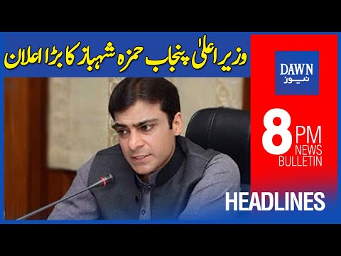 ڈان نیوز کی ہیڈ لائنز | 8 PM | وزیر اعلیٰ پنجاب حمزہ شہباز کا بارہ ایلاں | 16 اپریل 2022 VideoDawn On اپریل 16, 2022 3
