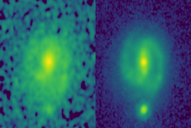 جیمز ویب اسپیس ٹیلی اسکوپ سے پہلے ہبل ٹیلی اسکوپ سے لی جانے والی ابتدائی دور کی تصاویر میں یہ پٹیاں واضح طور پر نہیں دیکھی گئیں تھیں۔ہبل ٹیلی اسکوپ سے لی جانے والی EGS-23205 نامی ایک کہکشاں کی تصویر میں صرف ایک سپاٹ دھبہ دِکھتا ہے جبکہ جیمز ویب اسپیس ٹیلی اسکوپ سے لی گئی تصویر میں درمیان میں موجود ستاروں کی پٹی سمیت خوبصورت حلزونی کہکشاں دیکھی جاسکتی ہے۔