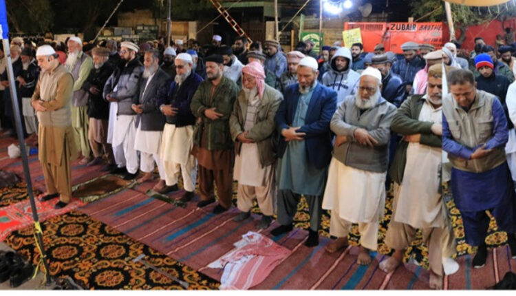 کراچی: کالے بلدیاتی قانون کے خلاف جماعت اسلامی کا سندھ اسمبلی کے باہر دھرنے میں شرکاء نے دھرنے کے نویں روز سانحہ مری کے شہداء کی غائبانہ نماز جنازہ ادا کی اور مرحومین سمیت لواحقین کے لیے صبر جمیل کیلیے دعا کی ، نماز جنازہ کی امامت امیر جماعت اسلامی کراچی حافظ نعیم الرحمن نے پڑھائی۔
