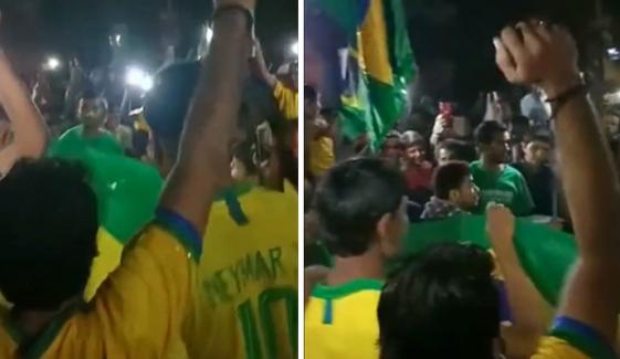 فٹبال ورلڈ کپ کے میچ میں برازیل کی پہلی جیت پر کراچی کے علاقے لیاری میں جشن منایا گیا۔