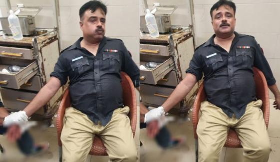 گھر گھر تلاشی کے دوران پولیس ایک گھر کی تلاشی کے لیے رکی تو گھر کے اندر سے ڈاکو نے فائرنگ کردی جس سے ایس ایچ او سرسید سب انسپکٹر شاہد تاج ہاتھ پر گولی گولی لگنے سے زخمی ہوگئے،جبکہ ایک اہلکار کے سر کے اوپر سے گولی گزر گئی اور وہ محفوظ رہا۔