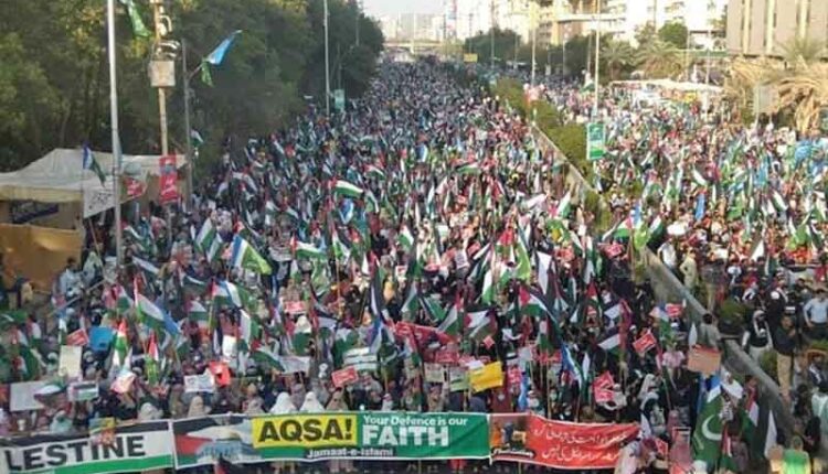 کراچی: جماعت اسلامی کے تحت اسرائیلی افواج کی جانب سے غزہ پر مسلسل بمباری، مظلوم و نہتے فلسطینی مسلمانوں، خواتین و بچوں سمیت سیکڑوں فلسطینیوں کی شہادت کے خلاف اوراہل فلسطین اور تحریک مزاحمت حماس سے یکجہتی اور اتحاد امت کے اظہار کے لیے اتوار15اکتوبر کو3بجے سہ پہر شاہراہ فیصل پر عظیم الشان فلسطین مارچ ہو گا۔
